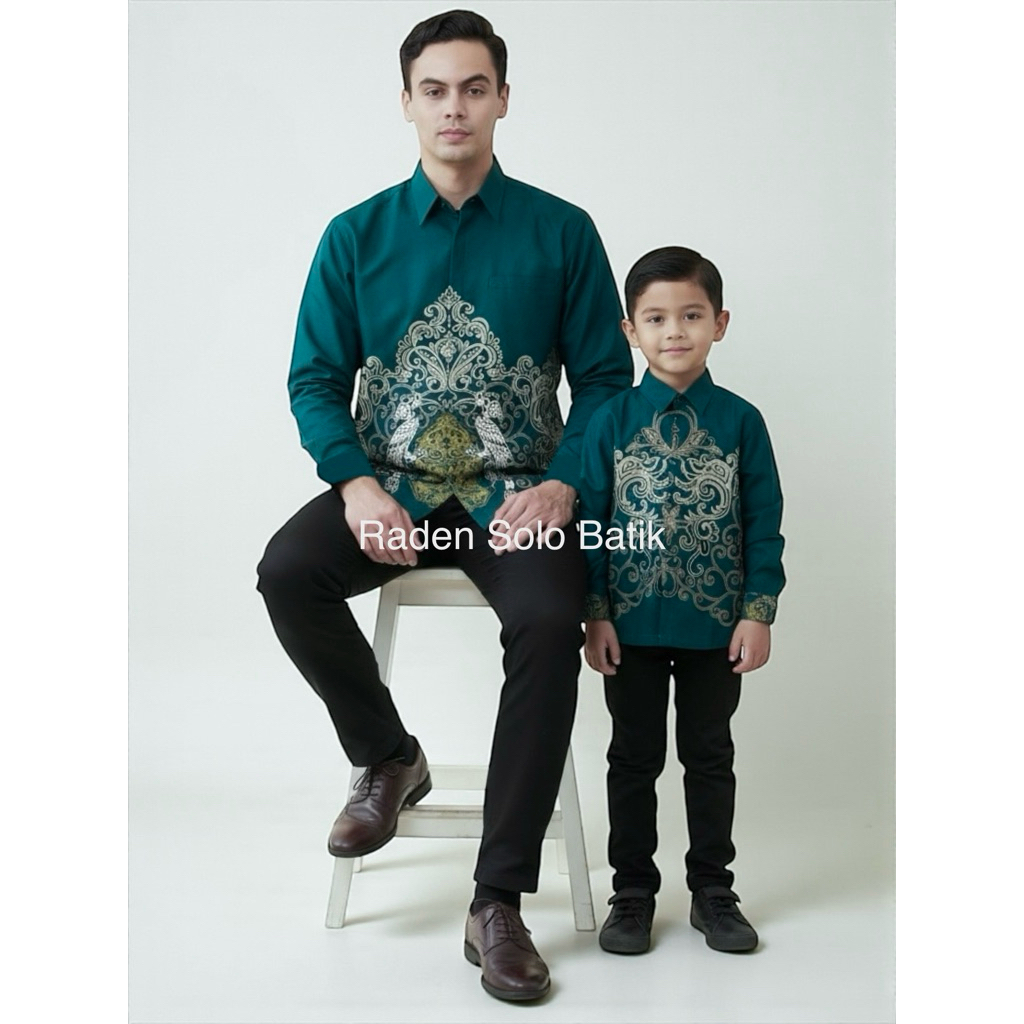 Cendrawasih,Kemeja Batik Warna Emerald Green Couple Ayah Dan Anak Pakai Lapisan Furing Katun Hero