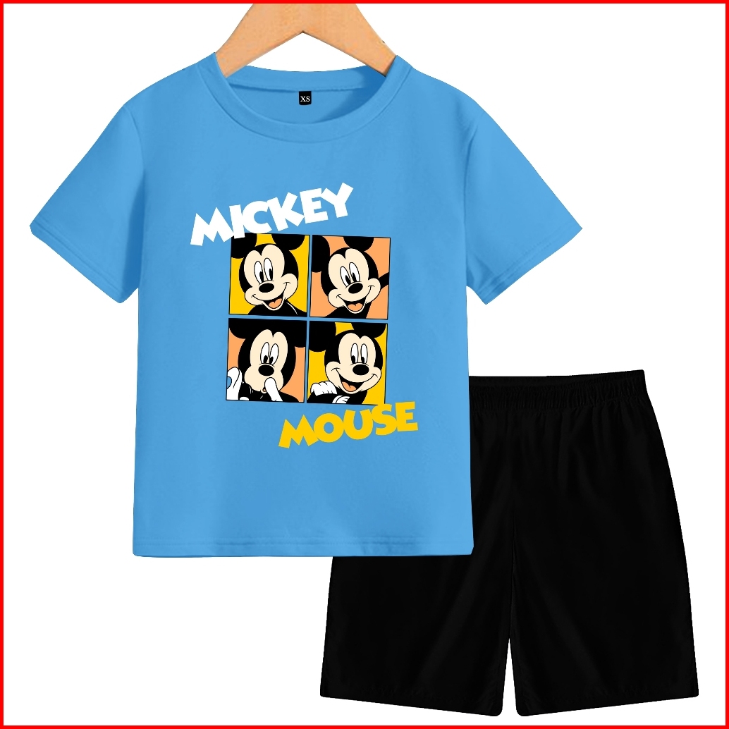 Setelan Anak Anak Mickey Mouse Lengan Pendek Umur 1-15thn Premium