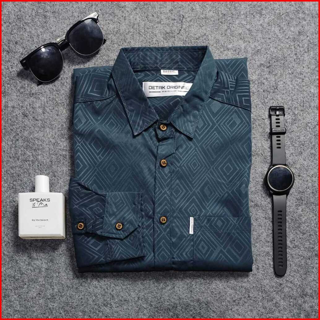 Detak Original Kemeja Embos Sultan Pria Lengan Panjang Ash Grey Tofubox Casual Slimfit