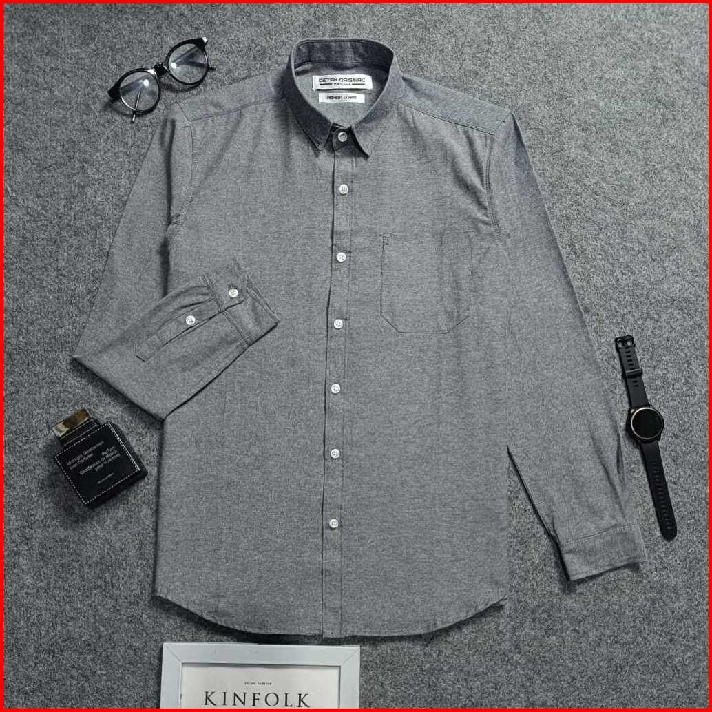 Detak Orioginal Kemeja Polos Pria Lengan Panjang Oxford Grey