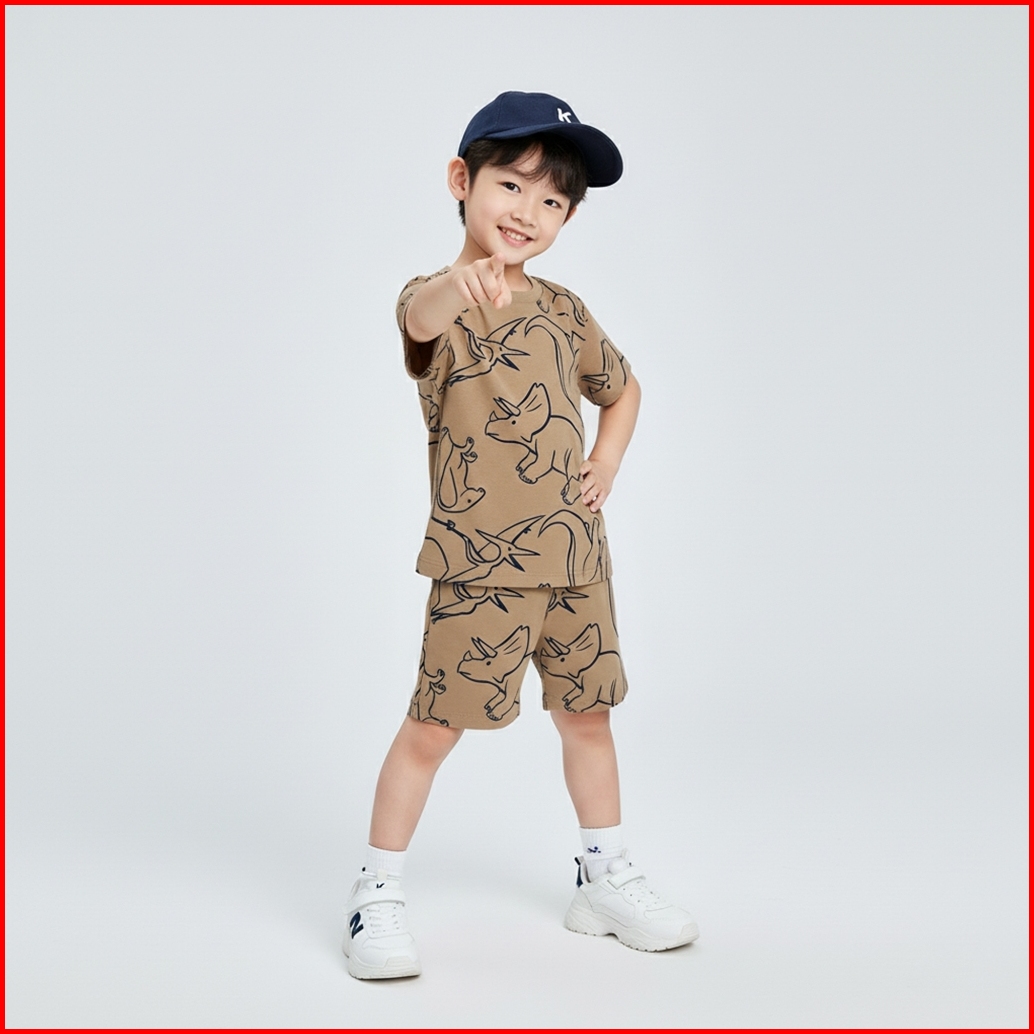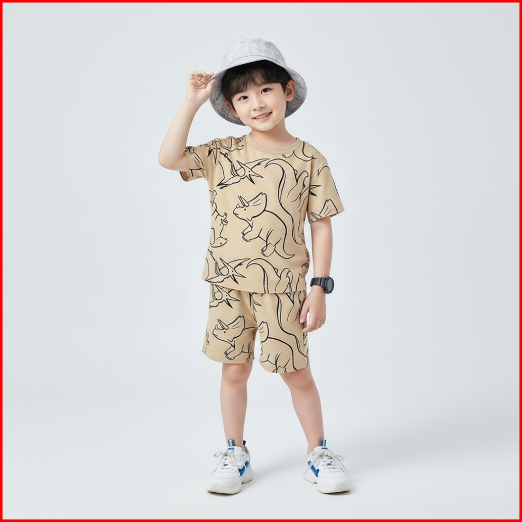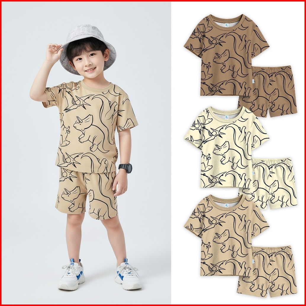 Kennai Baju Setelan Anak Pendek Laki Laki Oneset Anak Perempuan Series Big Dino Colony Usia 1-12 Tahun