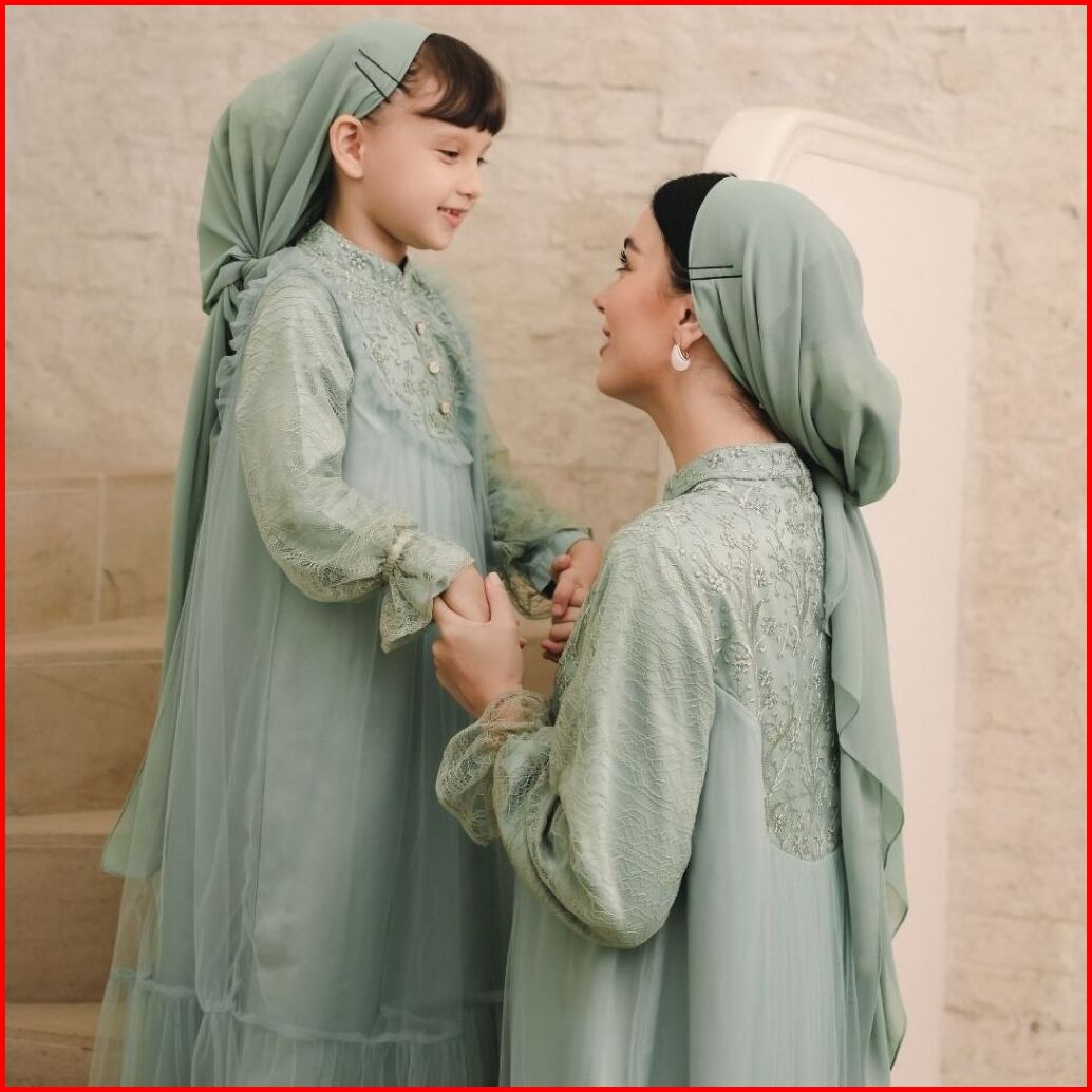 Ziel Kids - Najwa Dress Gamis Raya Terusan Satin Premium Couple Mom Girl