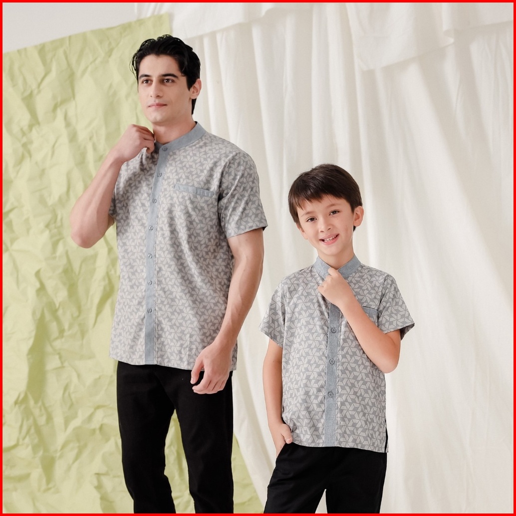 Ziel Kids - Adam Koko Dad Boy Sage Green Greyish Blue Baju Koko Laki-lak Rayai