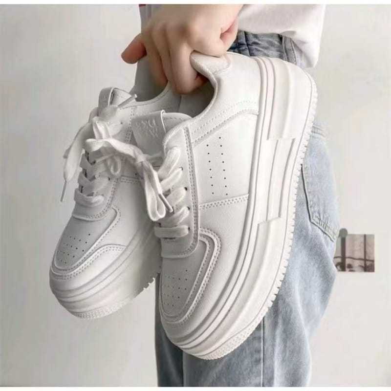Sepatu Sneakers Putih Polos Wanita Sepatu Sekolah Cewek HItam Polos Korean Style / Sepatu OOTD wanita ala korea Hits Ter