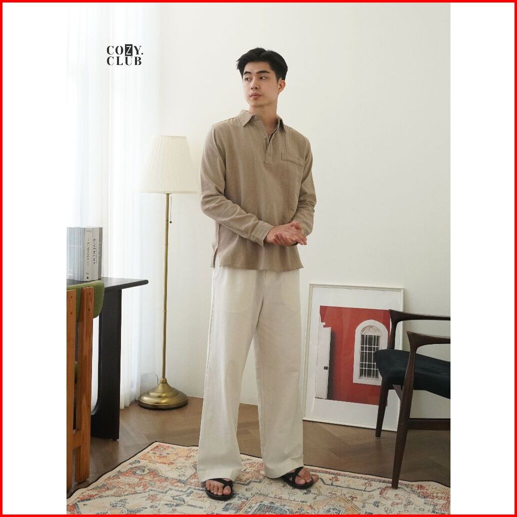 Cozyclub Linen Straight Pant Celana Panjang Linen Pria Loose Fit Pinggang Stretch 981
