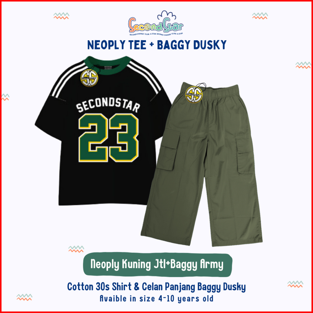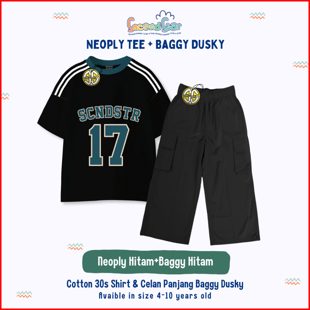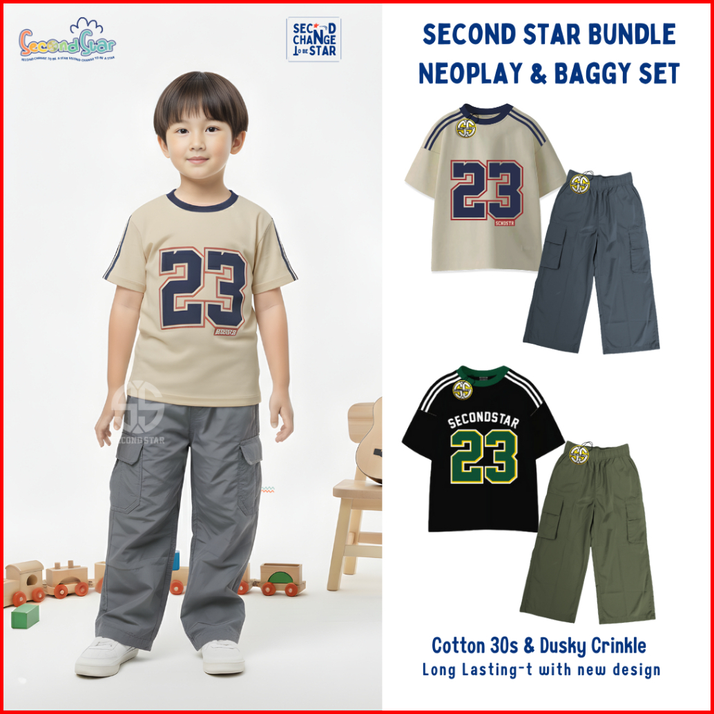 Secondstar Setelan Anak Laki-laki Perempuan Usia 4-10 Tahun Neoply Tee Series Dan Celana Baggy Dusky Panjang - Ssb35