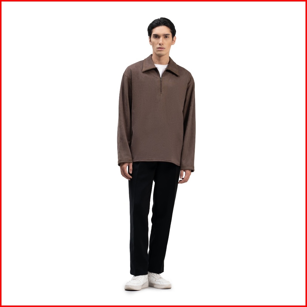 Ribsgold Halfzip Suede Atasan Pria Fleksibel Casual Premium Look