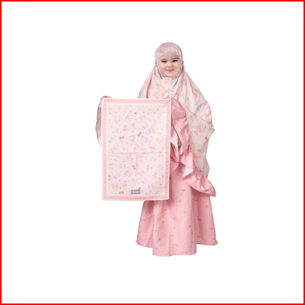 Mukena Anak Sajadah Anak Travelling Free Pouch Motif Cherry Periwingkle Saliara Allysum Omiland