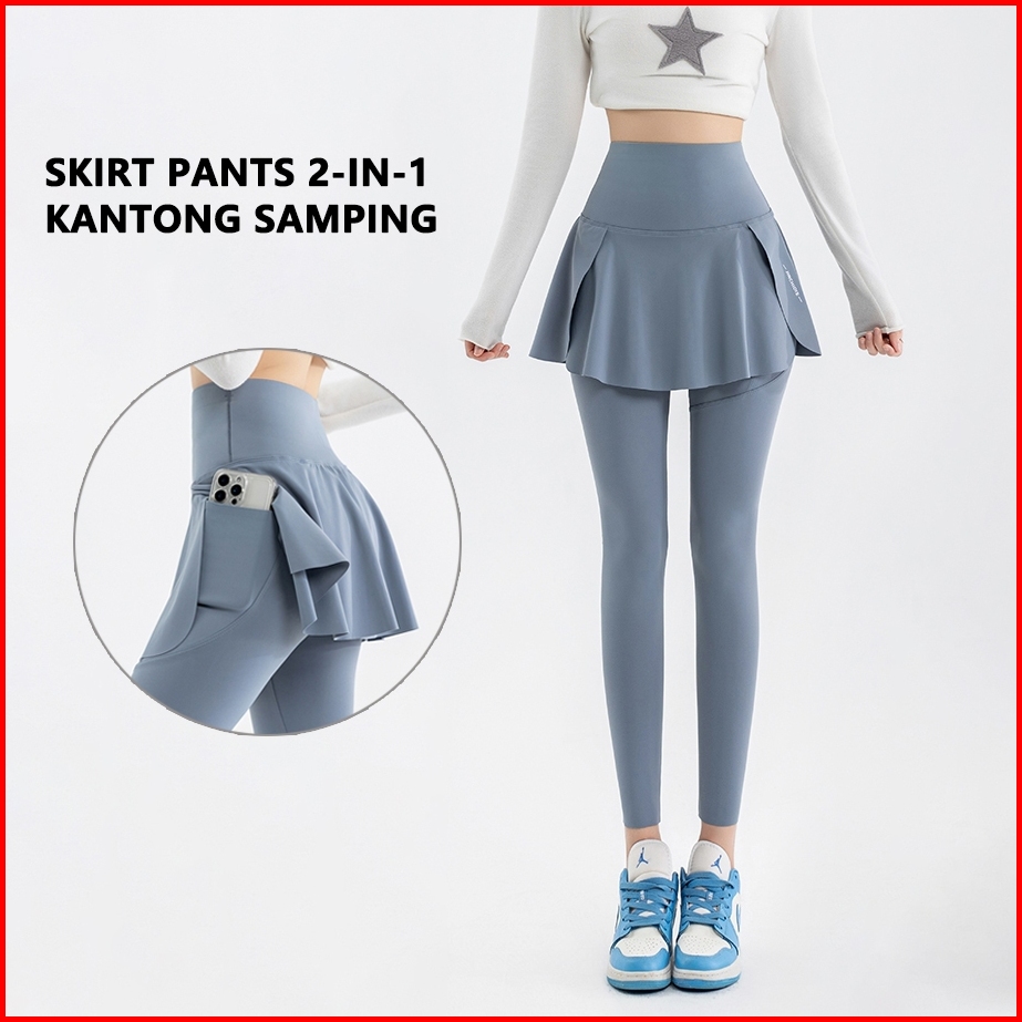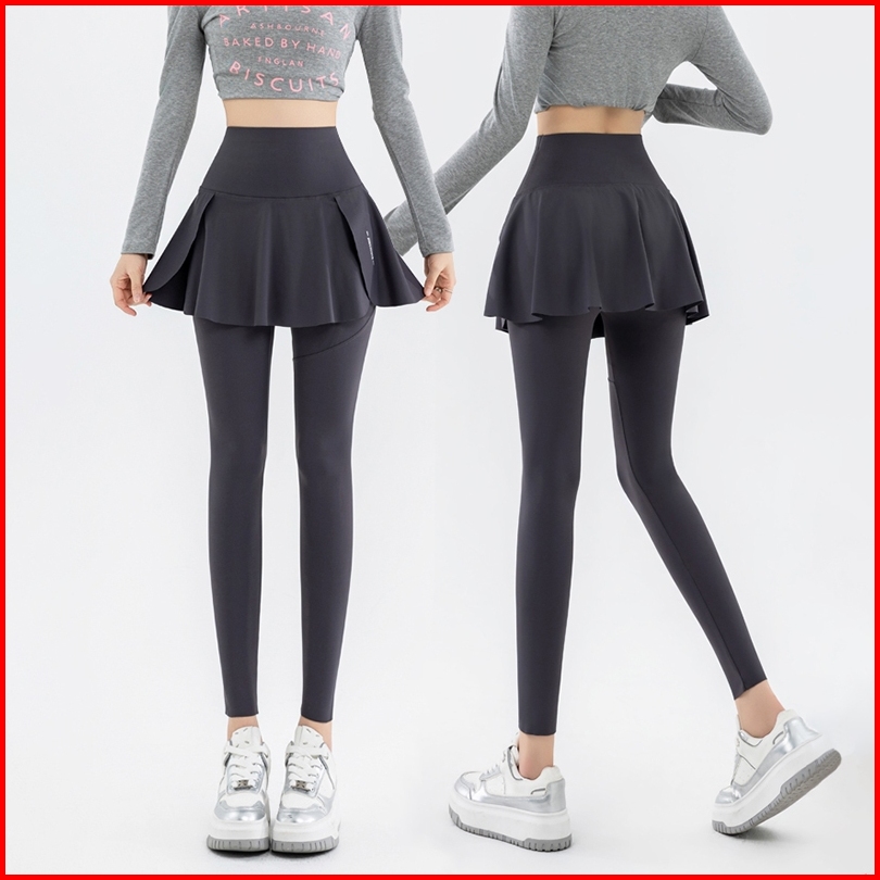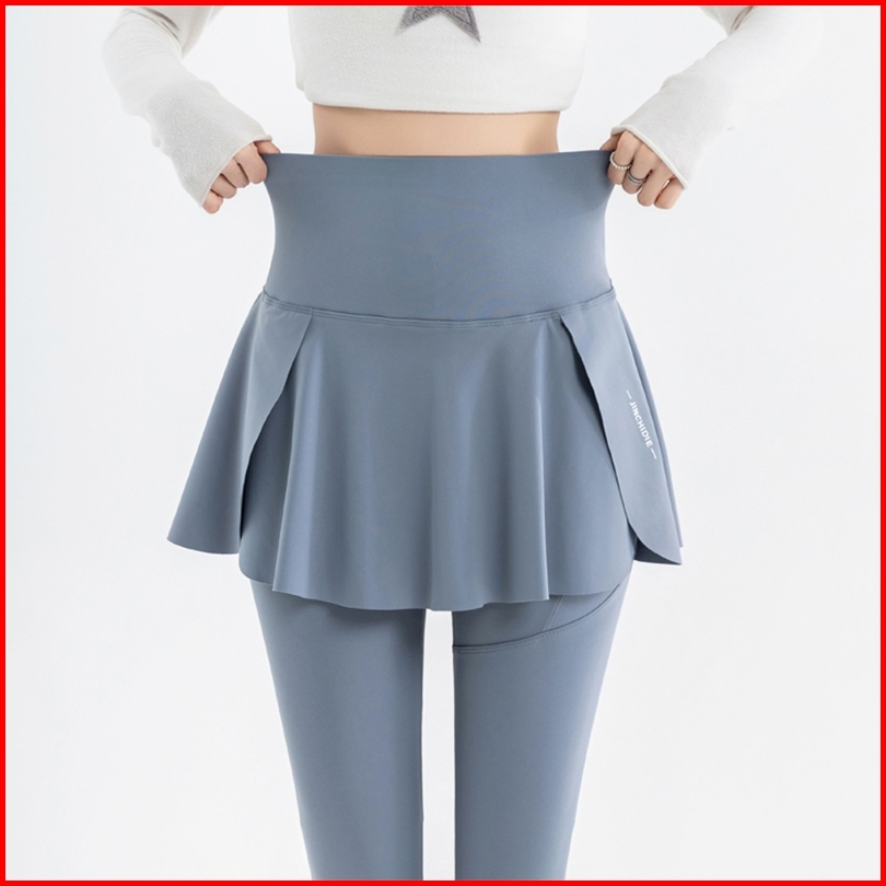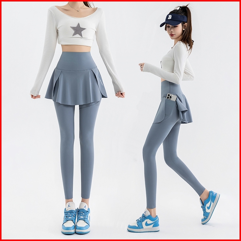 Yobao 2-in-1 Legging Rok Celana Olahraga Wanita Highwaist Skirt Pant Gym Zumba Pilates Yoga