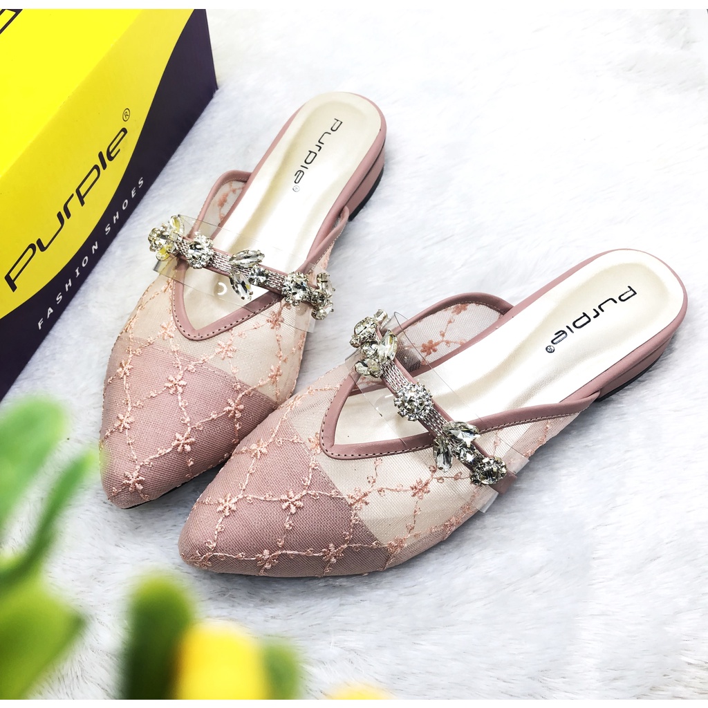 Sandal Brukat Flat Shoes Wedding Wanita Valerina Series Purple Original Big Size Lokal