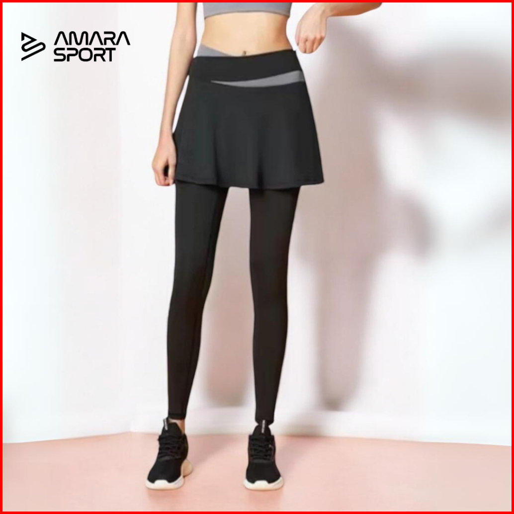 Amara Rok Legging High Waist Import Wanita Kekinian Rok Celana Olahraga Lari Gym Yoga Poundfit Yoga