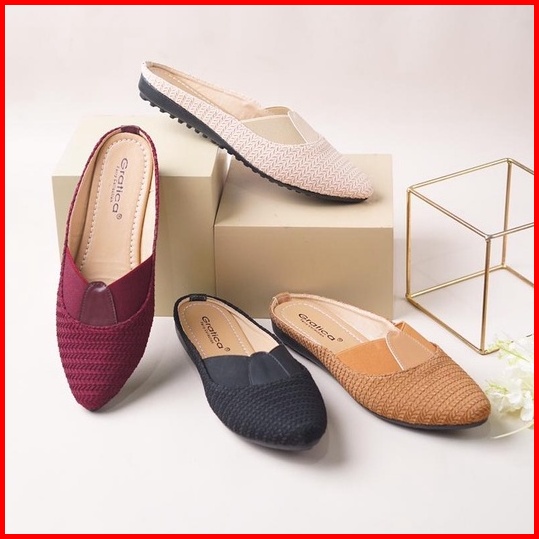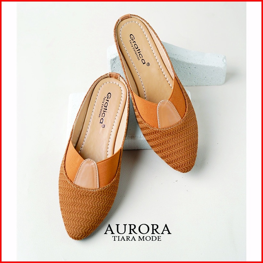 Sendal Mules Wanita Terbaru Aurora Kulit Jeruk