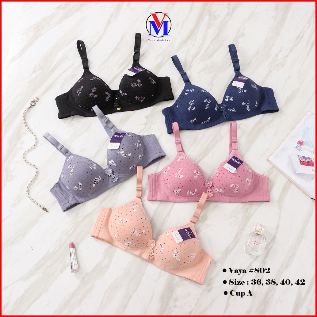 Vaya 3pcs Bra Tanpa Kawat Cup A-b Kait 3 Art 802 Motif Bunga