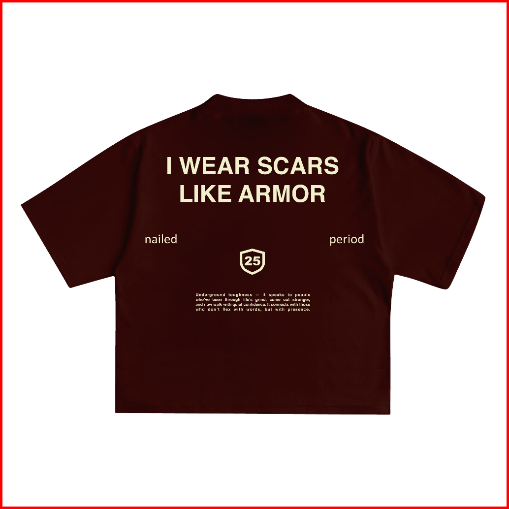 Thenational Boxy T-shirt Armor Burgundy Desain Streetwear Look 16s