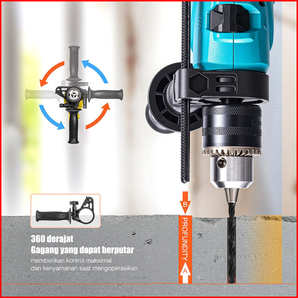 Mtmasaki Mesin Bor Listrik Impact Drill Listrik Pro 13mm Mt-13b
