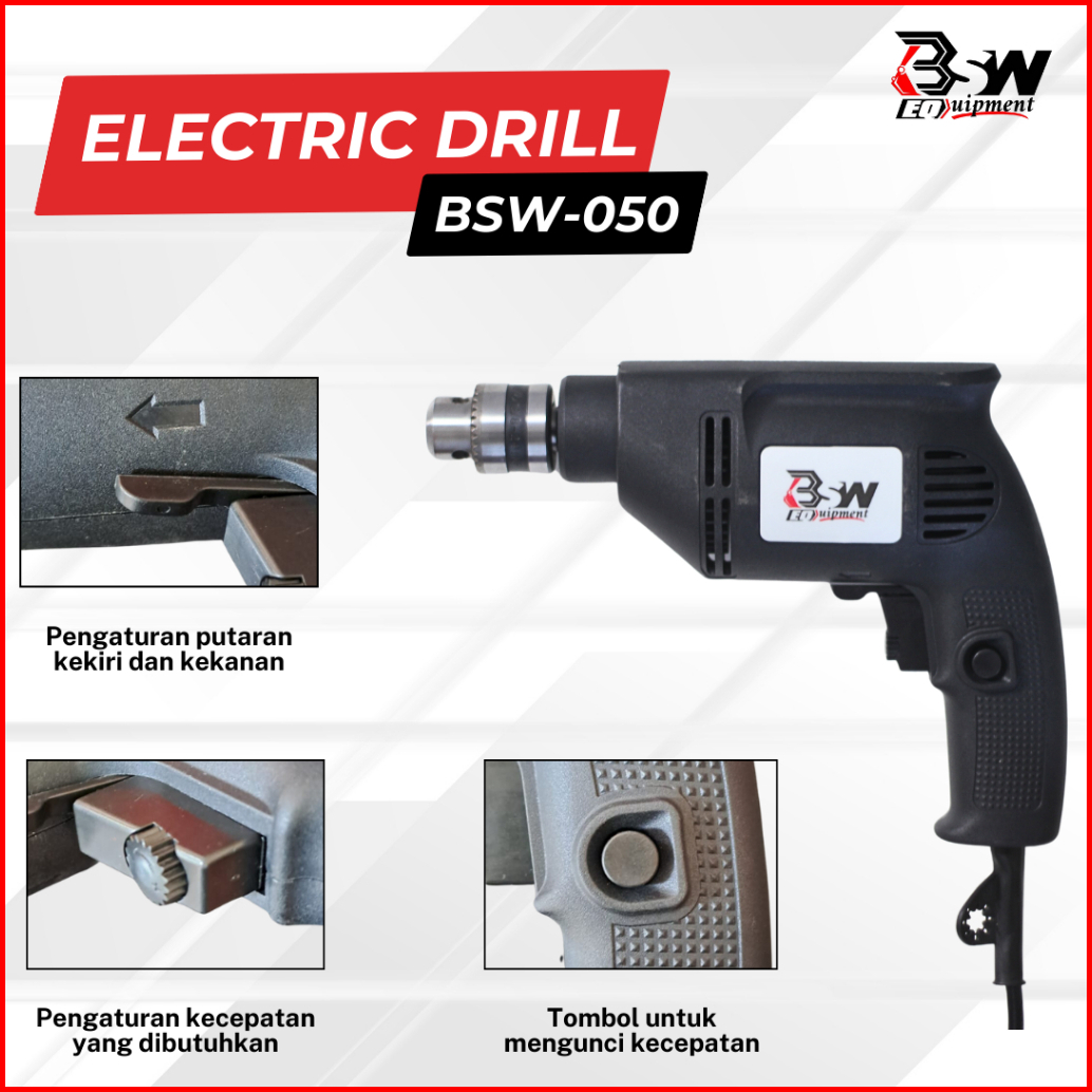 Mesin Bor Listrik 10mm Bolak Balik Electric Drill Bor Beton Kayu Besi Kualitas Terbaik Bsw