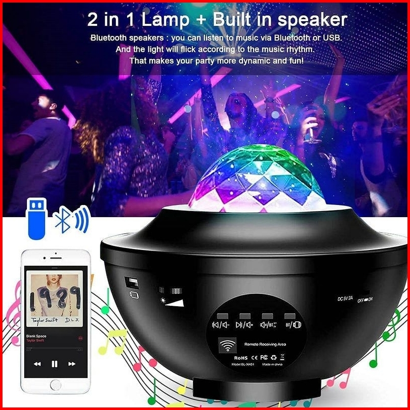 Pplus Lampu Proyektor Dengan Speaker Langit Malam Bintang 2in1 Lampu Starry Projector Light Lampu Tidur Lampu Proyektorg