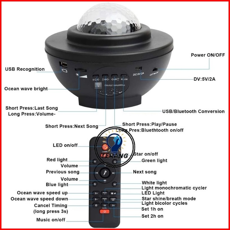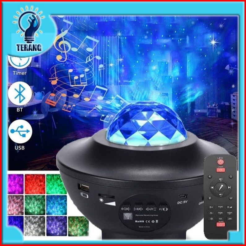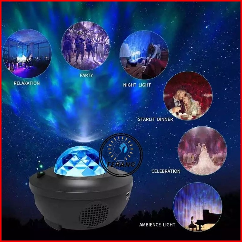 Lampu Proyetor Aurora Dengan Speaker Langit Malam Bulan Bintang 2in1 Lampu Starry Projector
