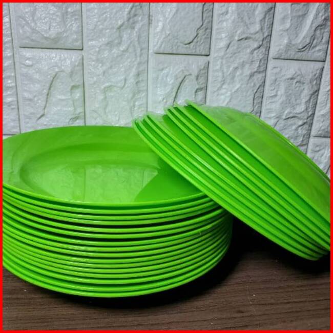 1 Lusin Piring Makan Plastik 9 Inci Hijau Oren