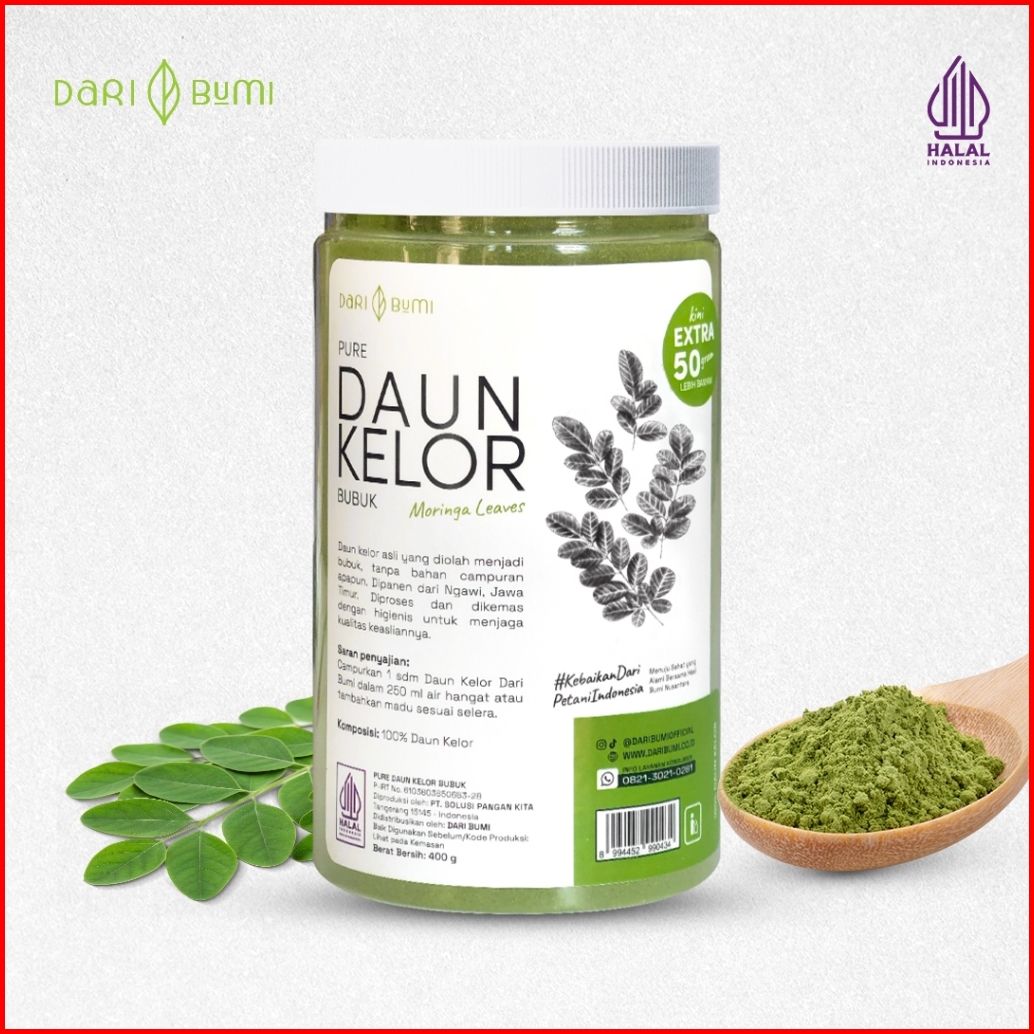 Daun Kelor Bubuk Moringa Daribumi 400 Gr Extra 50gr Pure Serbuk Daun Kelor Halus Organic Cegah Diabetes Dan Cocok Untuk