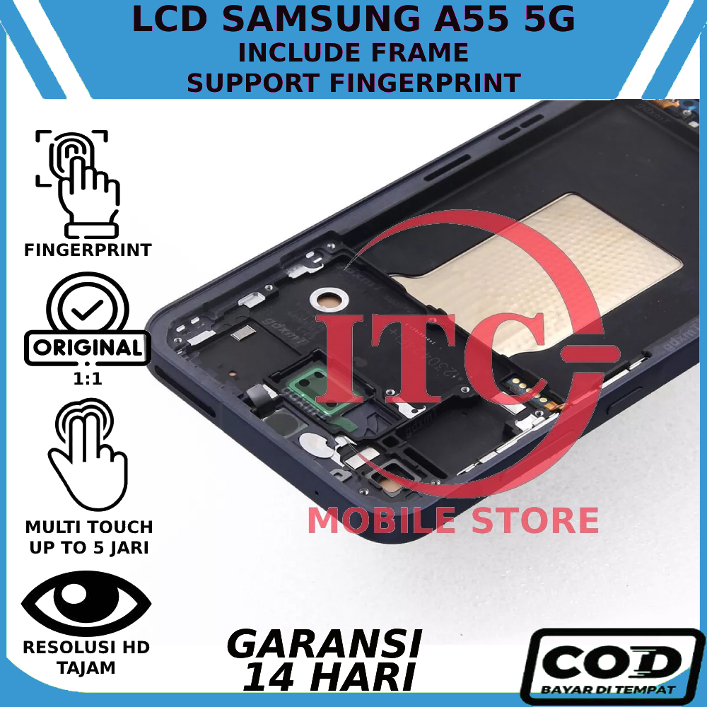 LCD TOUCHSCREEN SAMSUNG A55 (5G) SUPPORT FINGERPRINT INCLUDE FRAME ORIGINAL GARANSI GRATIS LEM