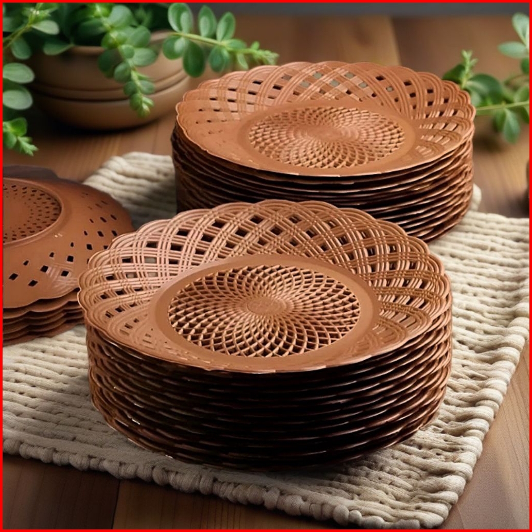 1 Lusin Piring Rotan Plastik Tebel 24cm Coklat