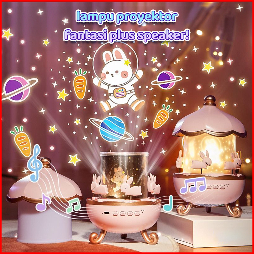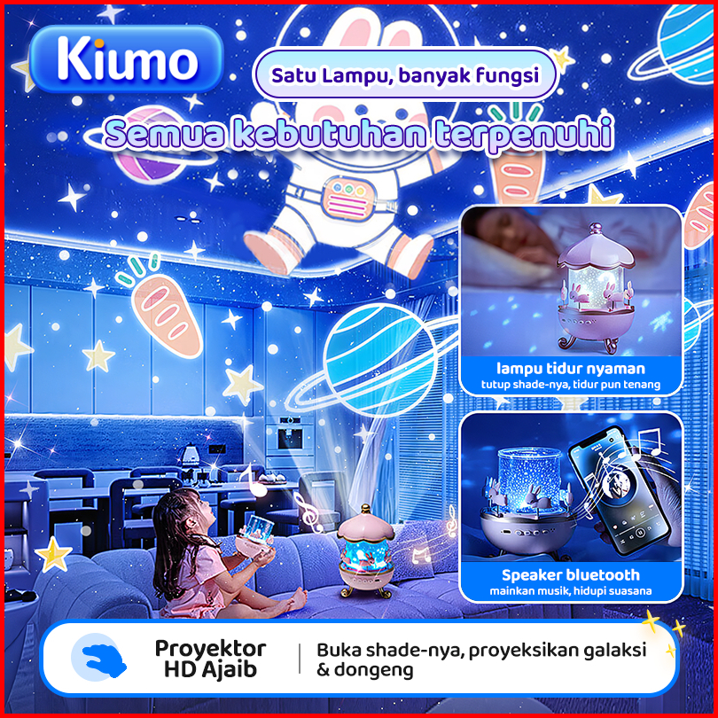 Kiumo Lampu Proyektor Anak Lampu Tidur Proyektor Galaxy Speaker Bluetooth Music Box