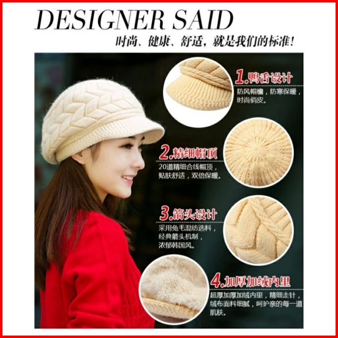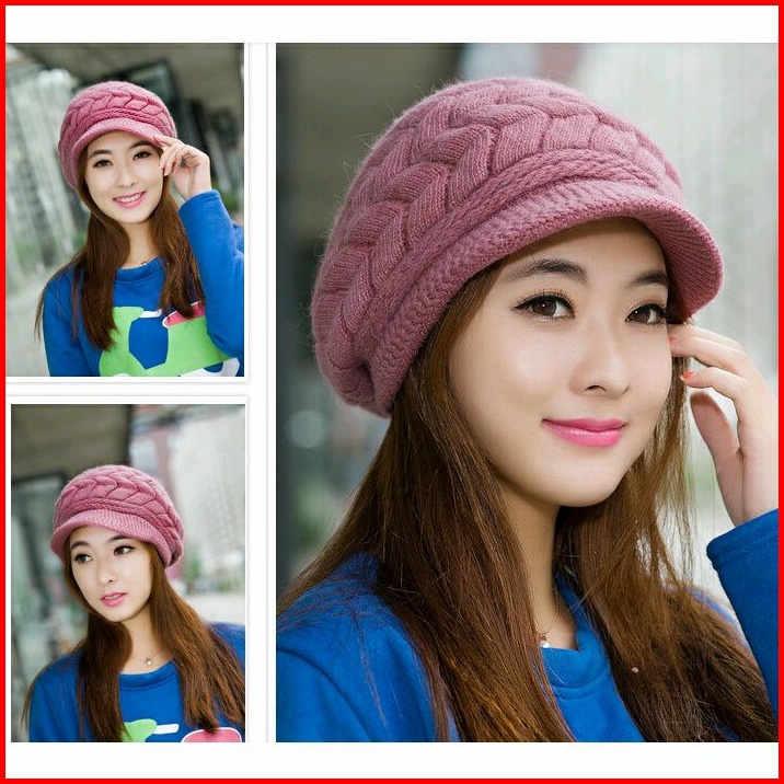 Topi Rajut Korea Topi Hijab Topi Wool Hangat Wanita Impor Murah