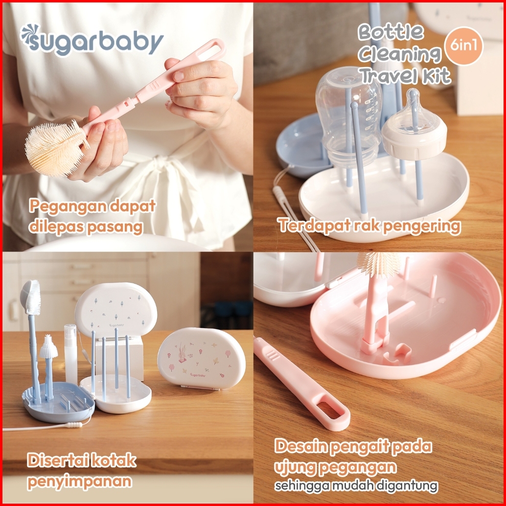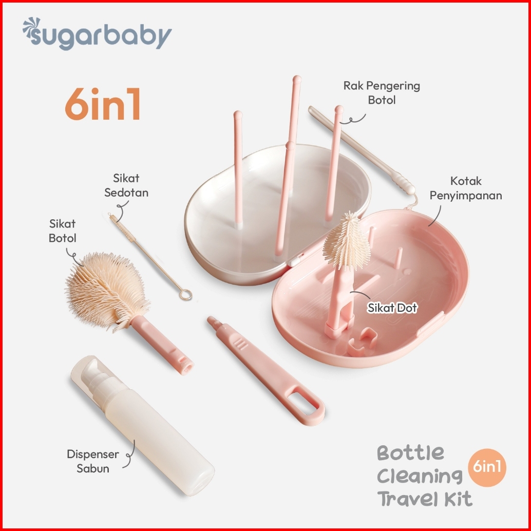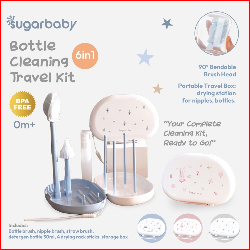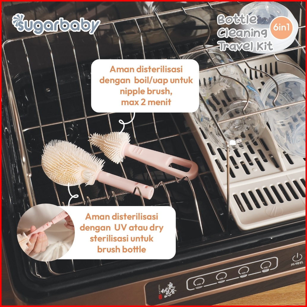 New Launch Sugarbaby Bottle Cleaning Travel Kit 6in1 Set Pembersih Botol Portable 6in1 Set Sikat Botol Susu Bayi 6in1