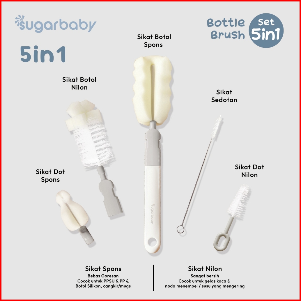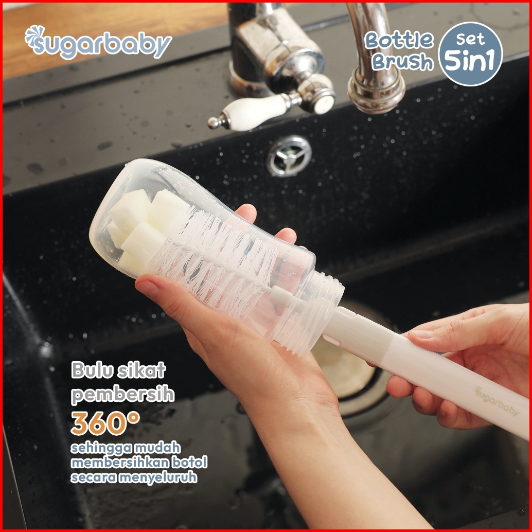 New Launch Sugarbaby Bottle Brush Set 5in1 Set Sikat Botol Susu Bayi 5in1 Sikat Botol Multifungsi