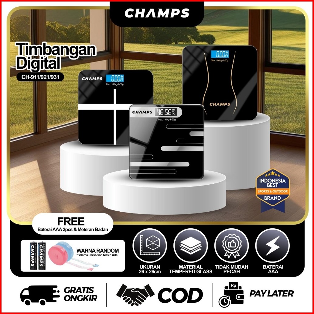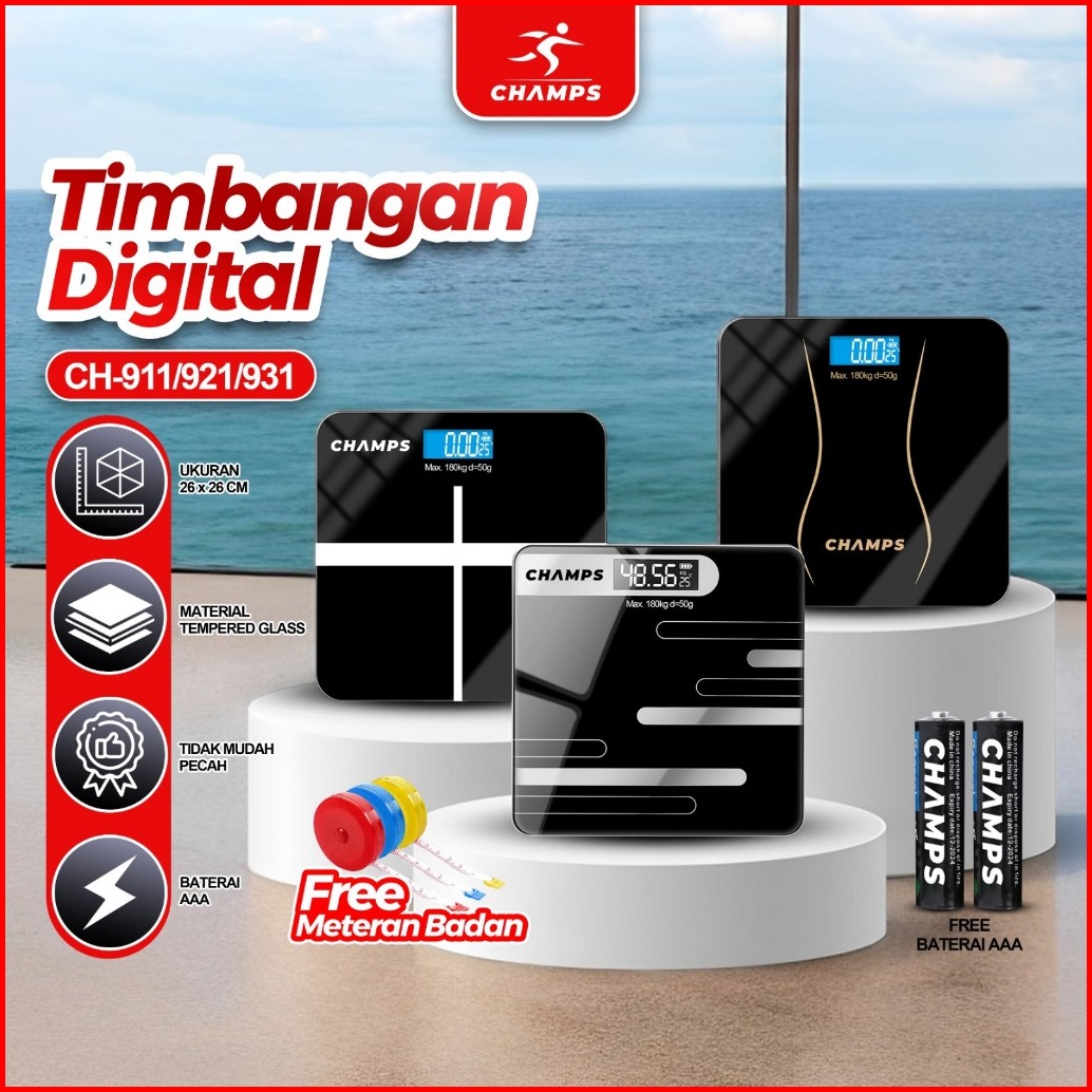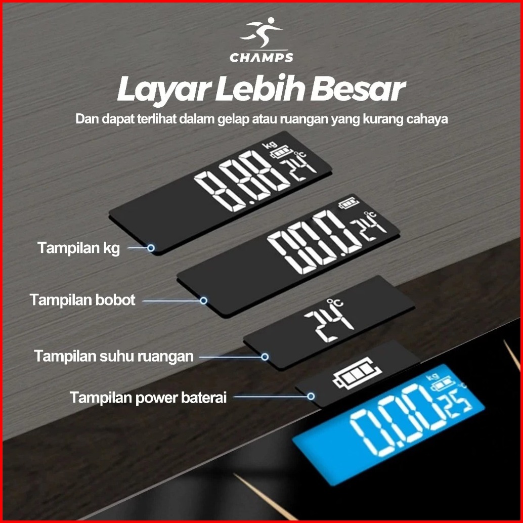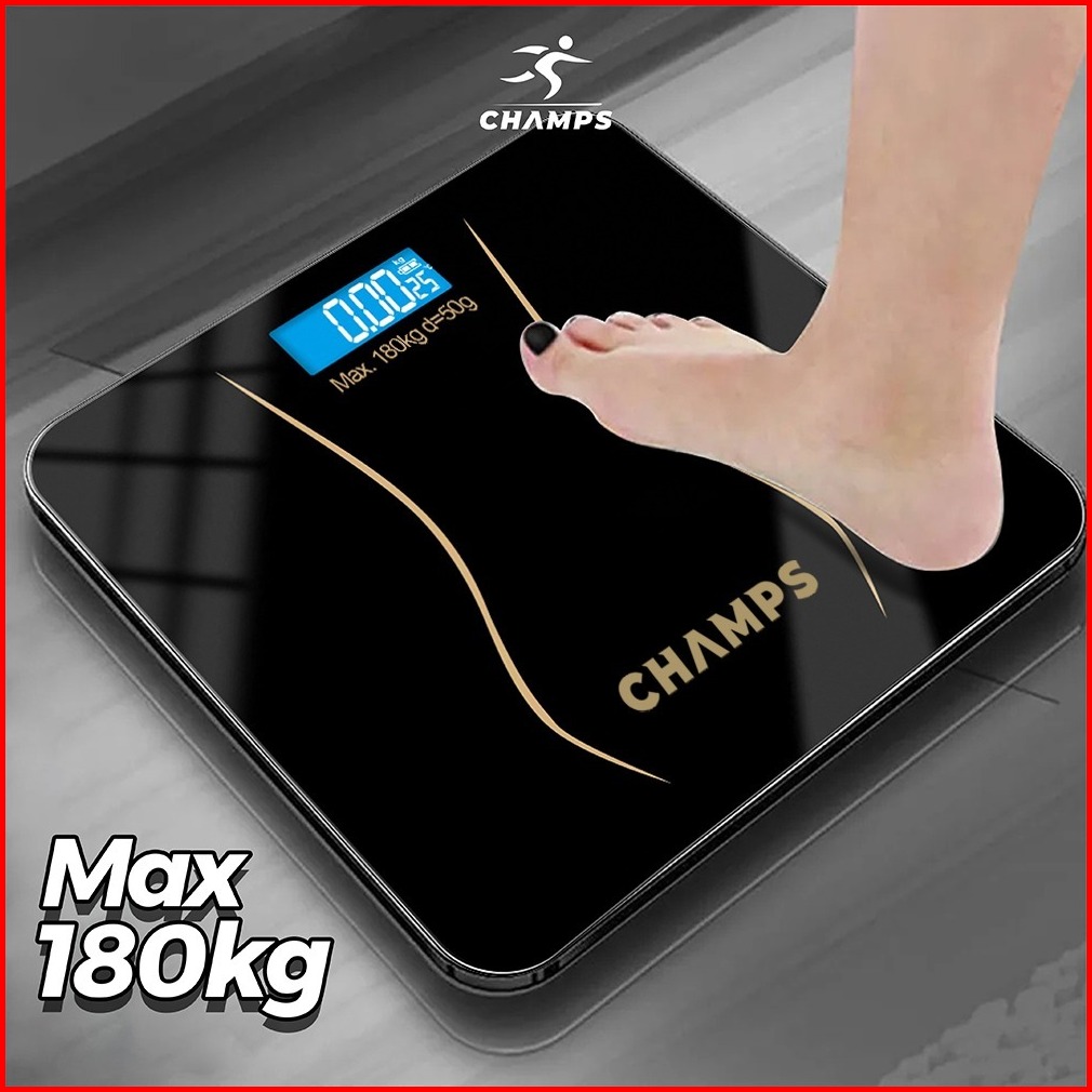Champs Timbangan Badan Digital Murah Alat Ukur Berat Badan Kaca Led Kaca Otomatis Akurat Elegan