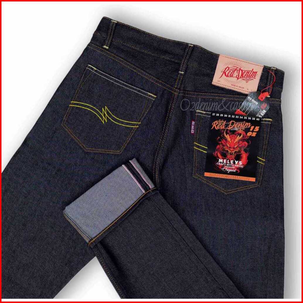 Red Denim 15oz - Celana Raw Denim Selvedge Accent Sanforized Extra Deep Indigo