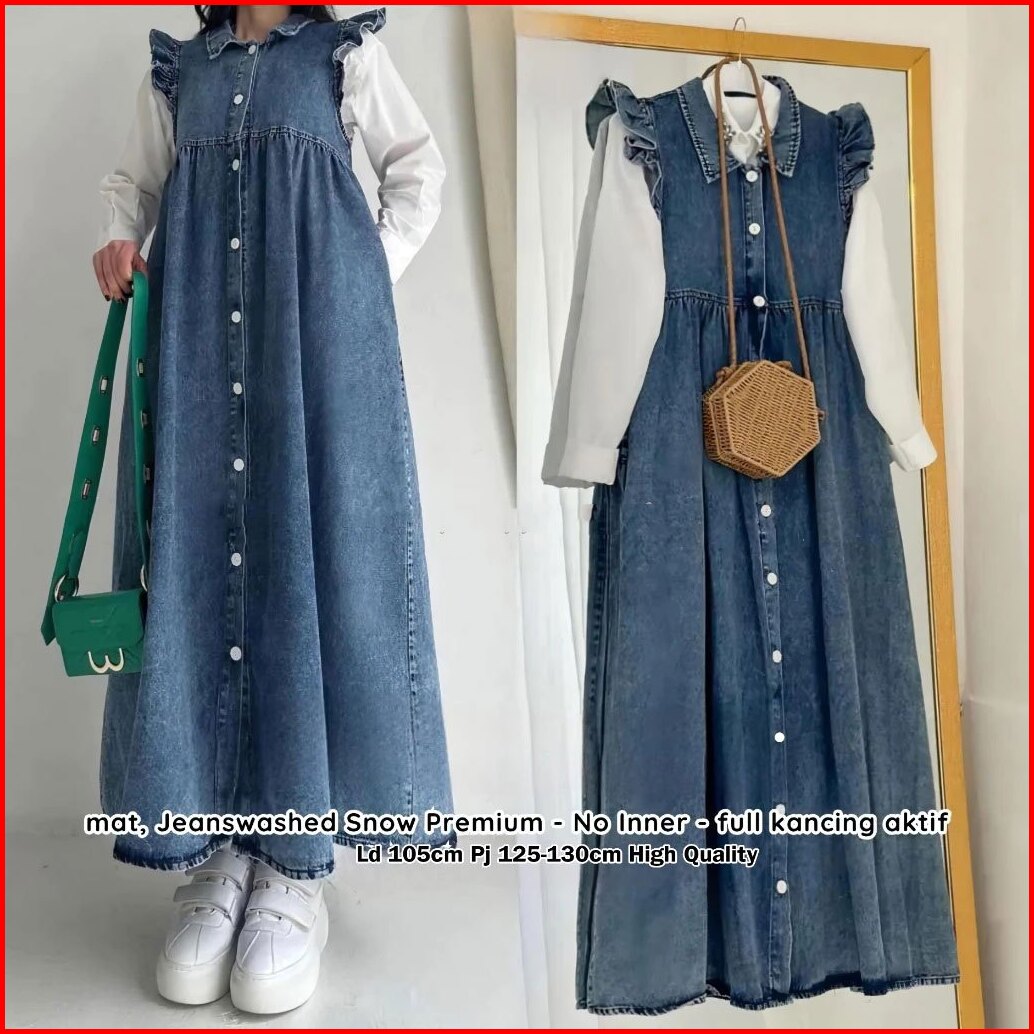 Britney Overall Jeans Gamis Dress Jamsuit Arfika Korean Baju Wanita Lebaran Terbaru Bajuratu