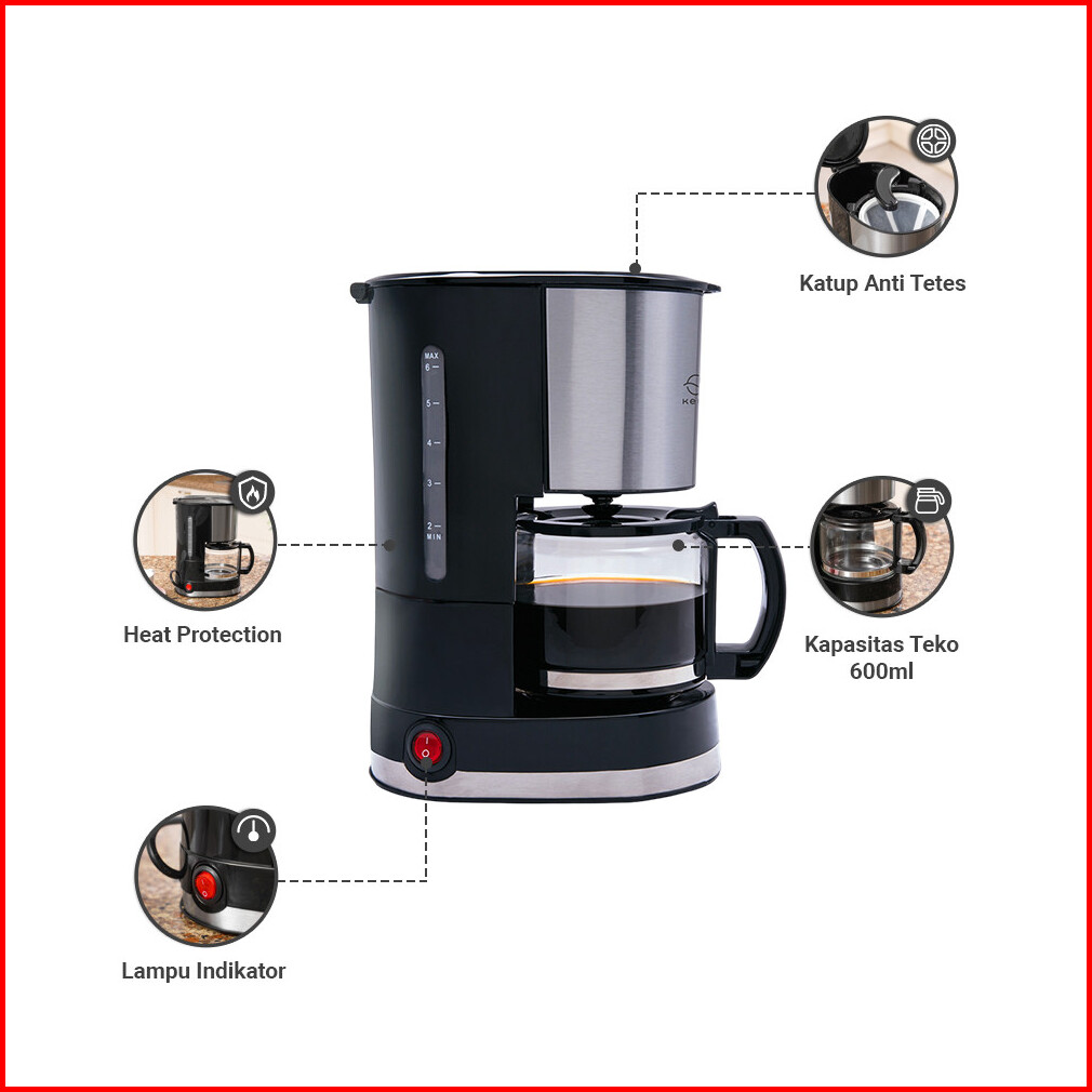 Kels 600 Ml Madison Coffee Maker - Hitam Mesin Kopi Espresso Machine Alat Pembuat Minuman Kopi