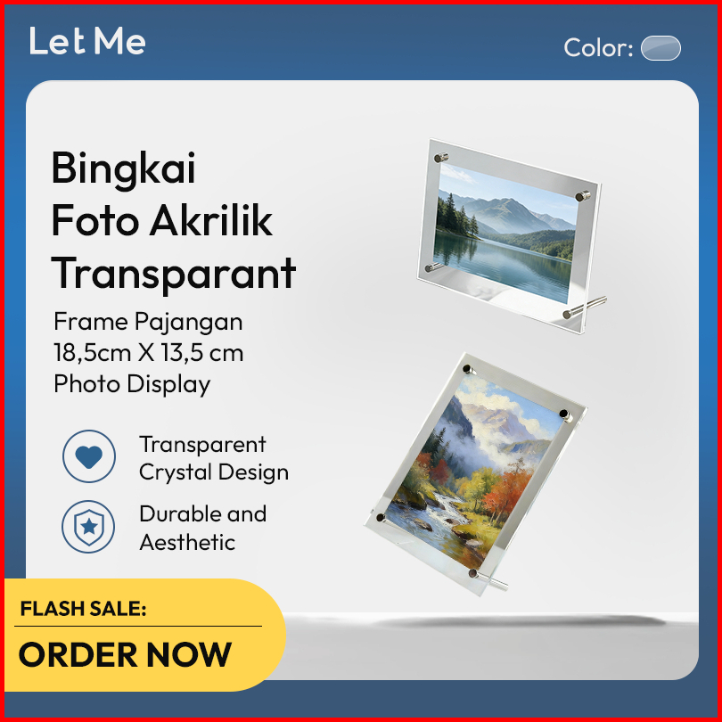 Let Me Bingkai Foto Akrilik Transparant - Frame Pajangan 18 5cm X 13 5 Cm Photo Display Lm-aga2096