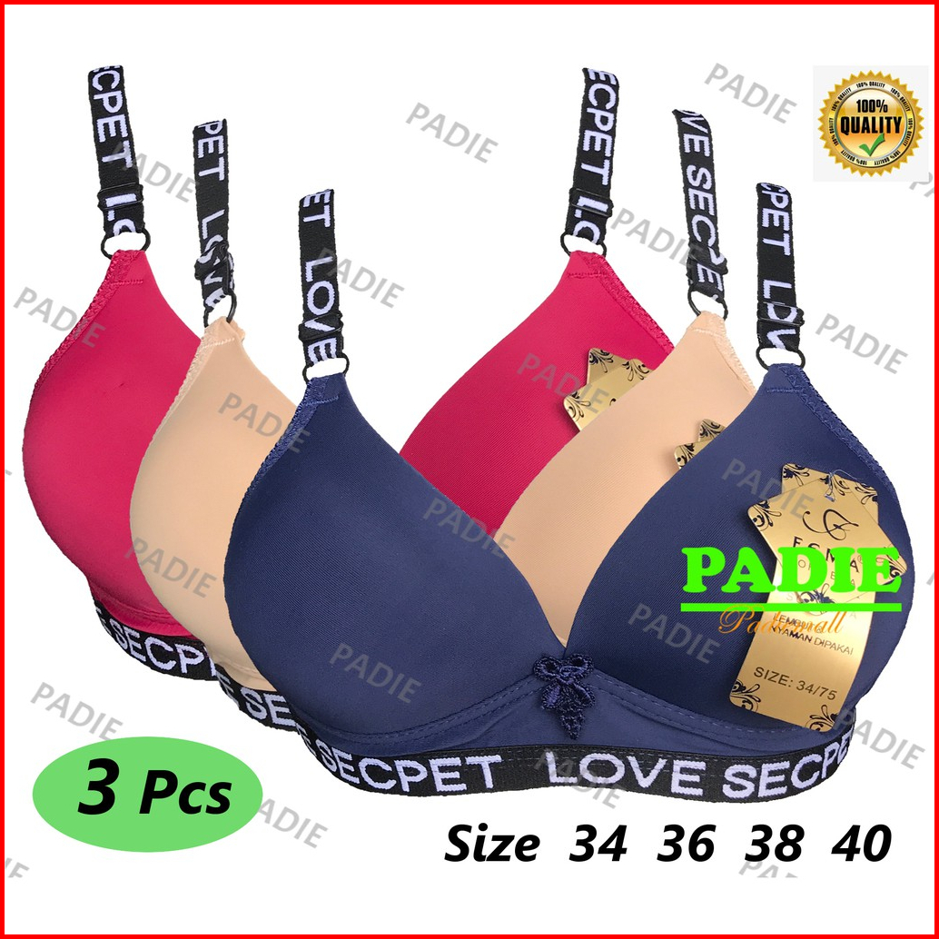 3 Pcs Bh Bra Remaja Wanita Bahan Katun Spandek Fema 9916 Cup Dan Busa Sedang Tanpa Kawat Kaitan 3