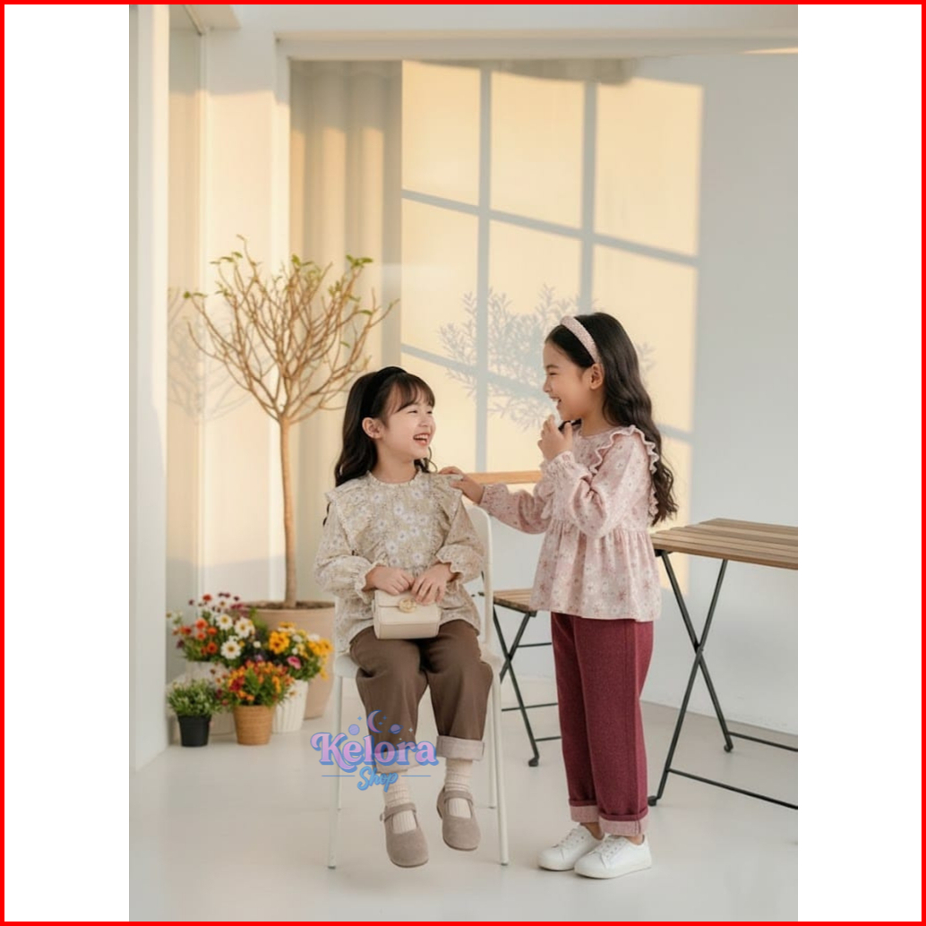 Setelan Anak Perempuan Model Blouse Ruffle Bunga Usia 1-12 Tahun Style Kekinian Banyak Varian Warna