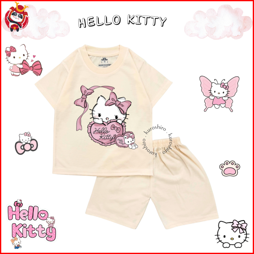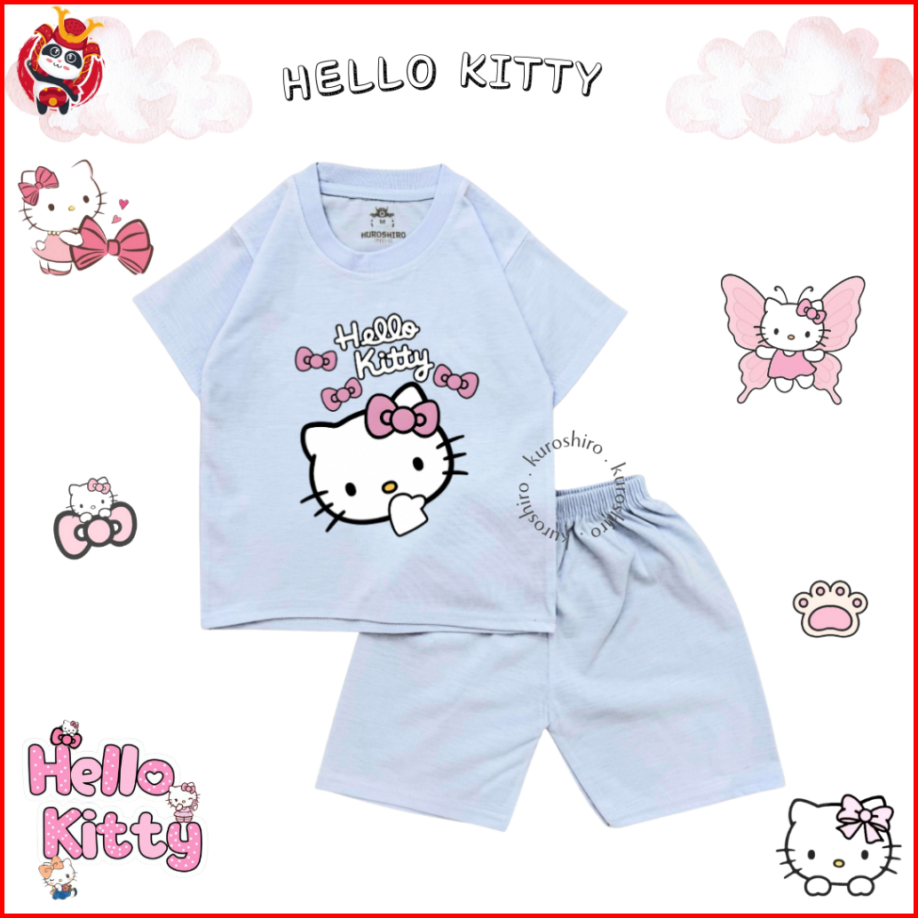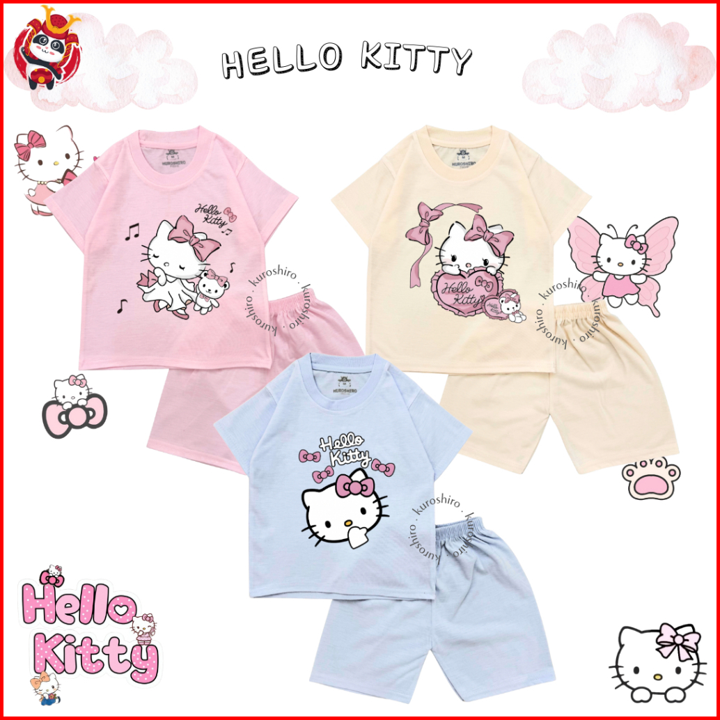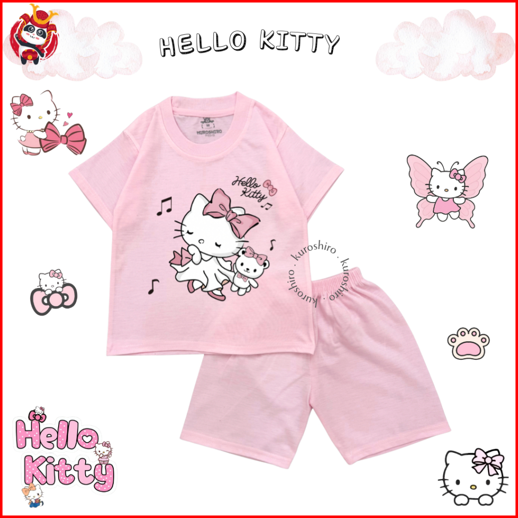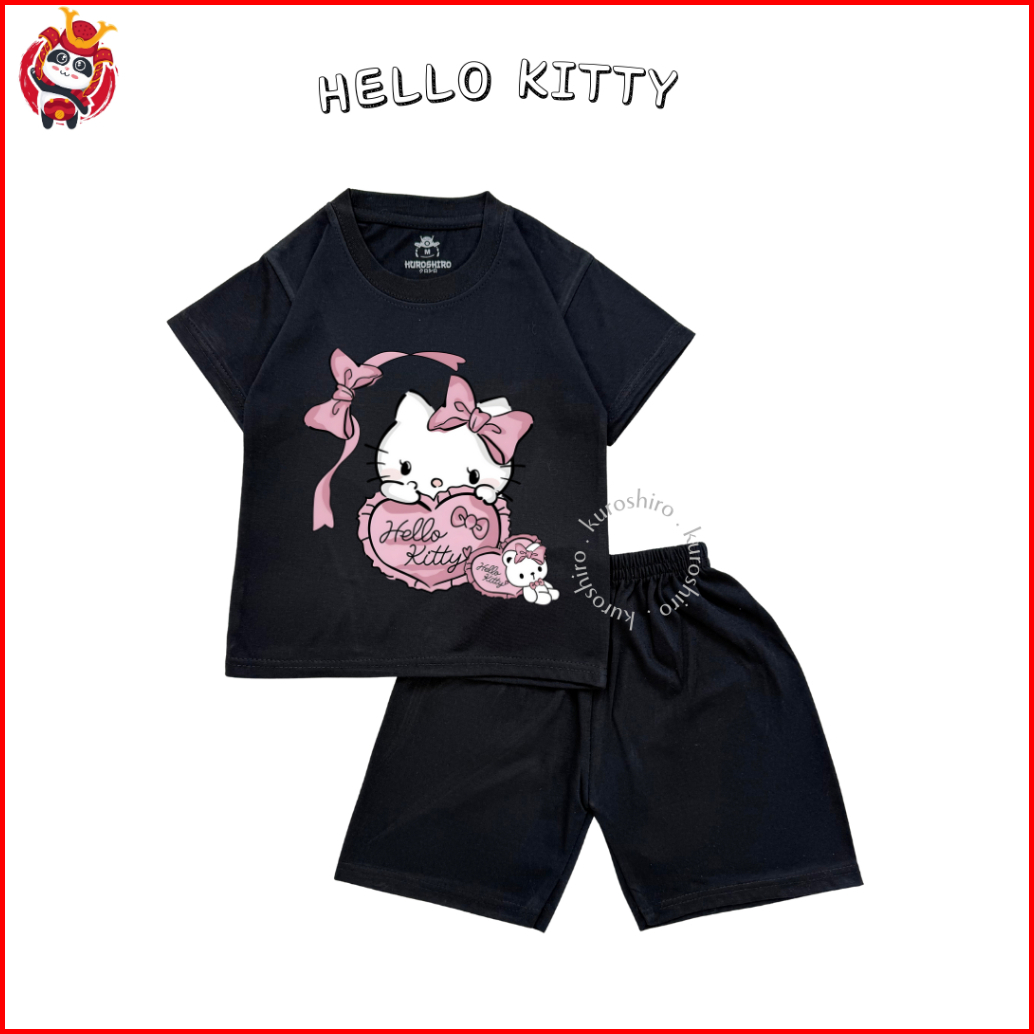 Kuroshiro - Setelan Baju Anak Perempuan 1-9 Tahun Hello K1tty Kaos Anak Cewek