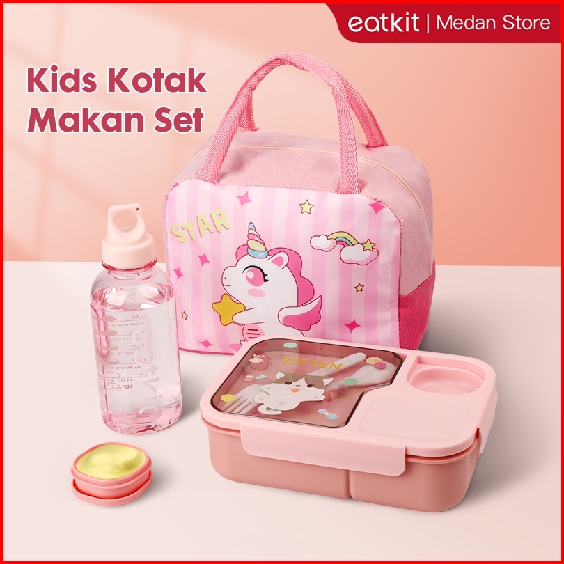 Medan Ready Stock Eatkit Paket Tempat Makan Anak 1450ml Set Alat Makan Sekolah Kotak Bekal Karakter Tas Bekal