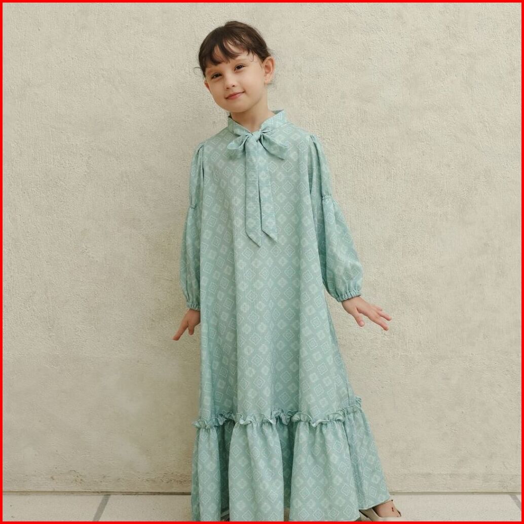 Ziel Kids - Mazaya Dress Gamis Raya Terusan Linen Premium Couple Mom Girl