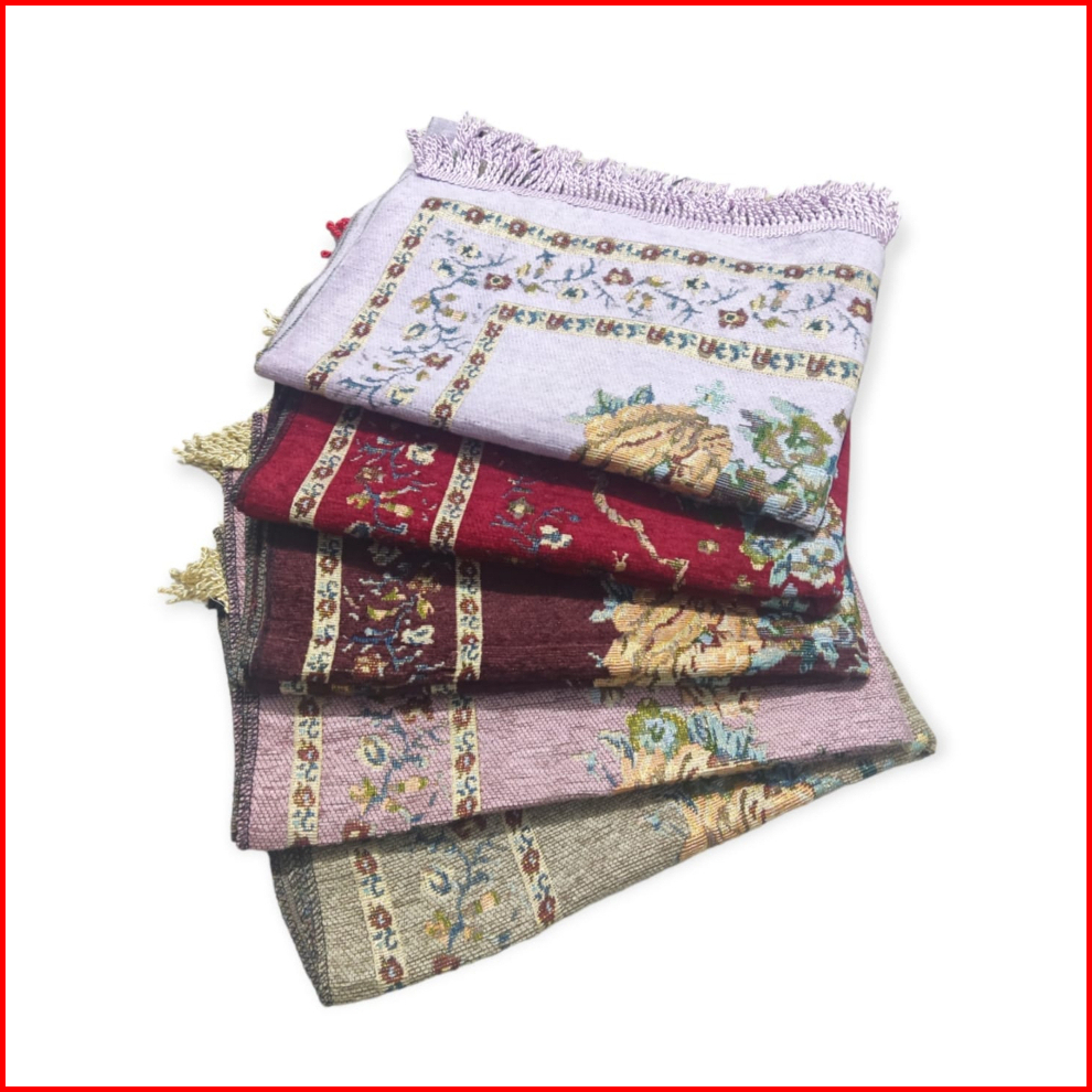 Sajadah Turki Turkey Premium Rumbai Rajut Motif Bunga Perlengkapan Sholat 70x110cm