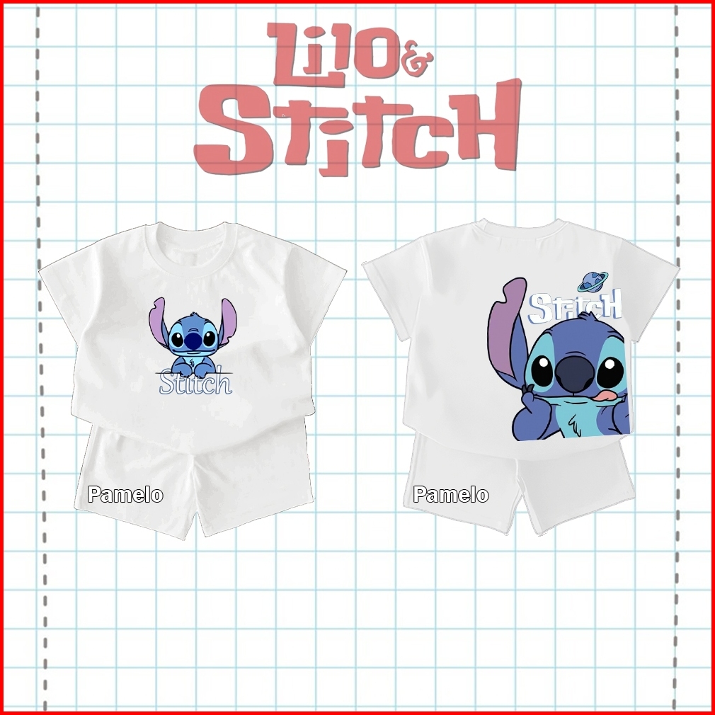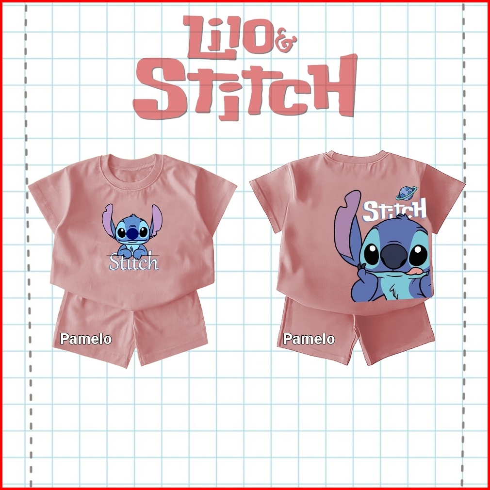 Setelan Anak Katun Combed 24s Stitch Kaos Celana Baju Santai Anak Murah Usia 1-4 Tahun