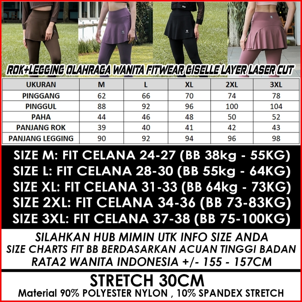 Rok Legging Olahraga Padel Dryfit Wanita Fitwear Giselle - M - 3xl