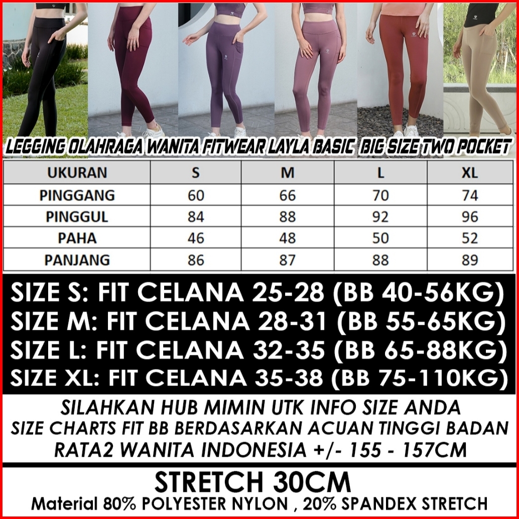Fitwear Legging Big Size Olahraga Wanita Layla Active 2 Pocket - S - Xl