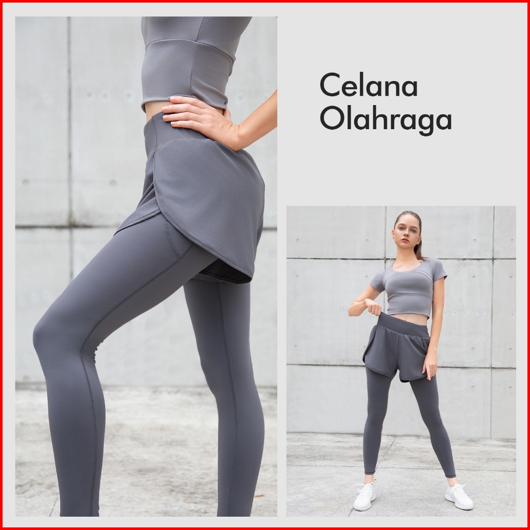 Hapigogo Celana Double Olahraga Wanita Legging High Waist Yoga Pants Sport Dua Lapisan 2 In 1
