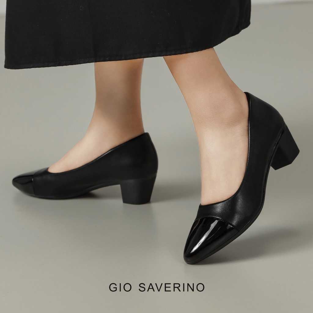 Gio Saverino Sepatu Wanita Pantofel Hitam Hak Sedang 5cm Clover Murah Gratis Ongkir