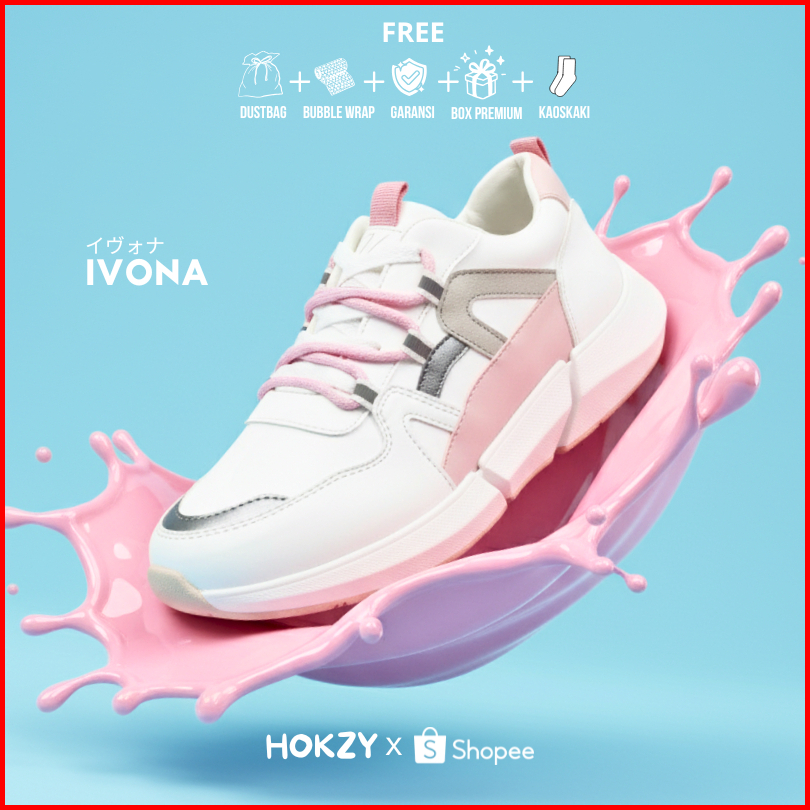 Hokzy Ivona Sepatu Wanita Sneakers Sport Shoes Pink Black Ivory Casual Olahraga