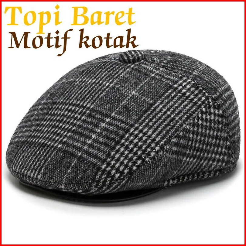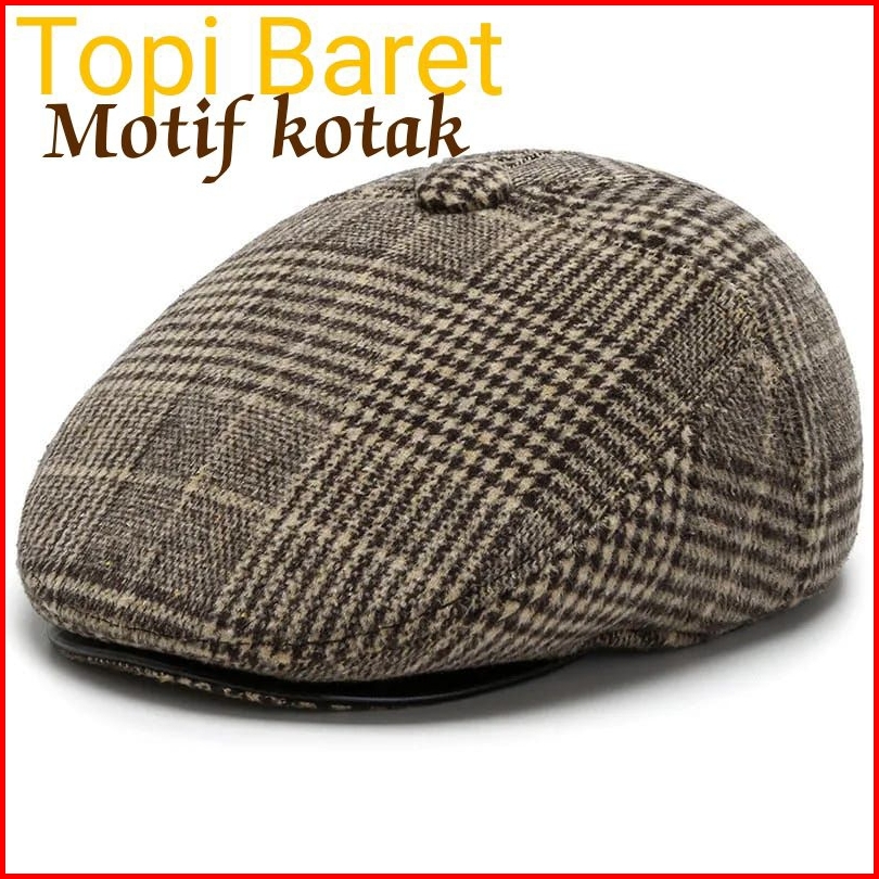 Topi Baret Pria Motif Kotak Impor