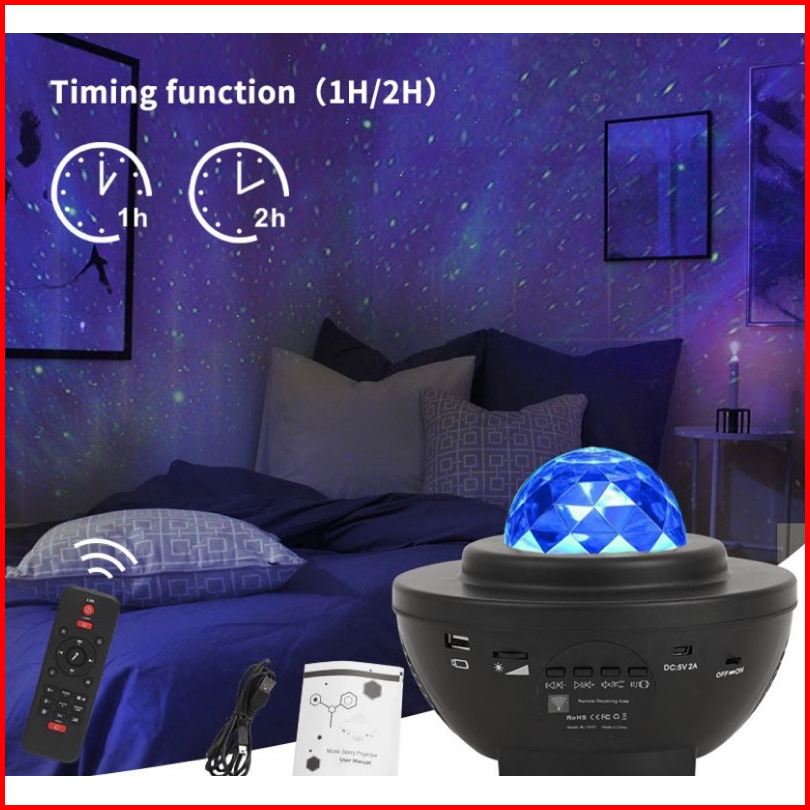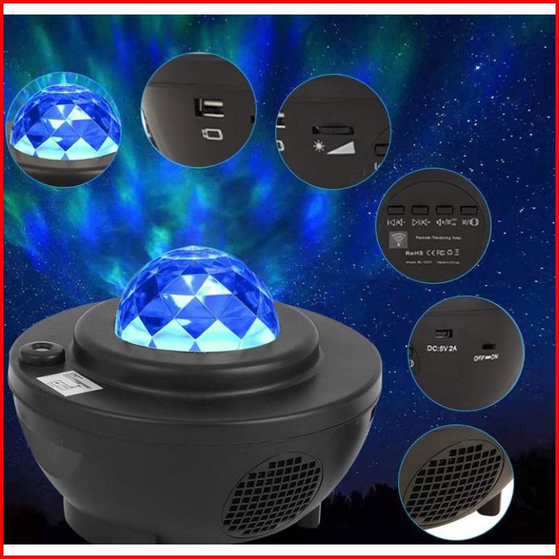 Lampu Tidur Proyektor 2in 1 Galaxy Blue Sky Biru Bluetooth Speaker Musik Remote