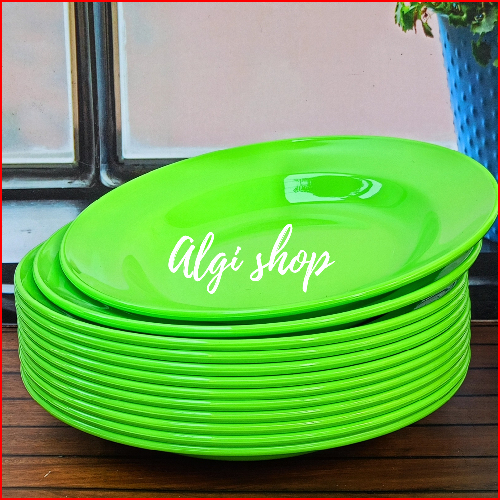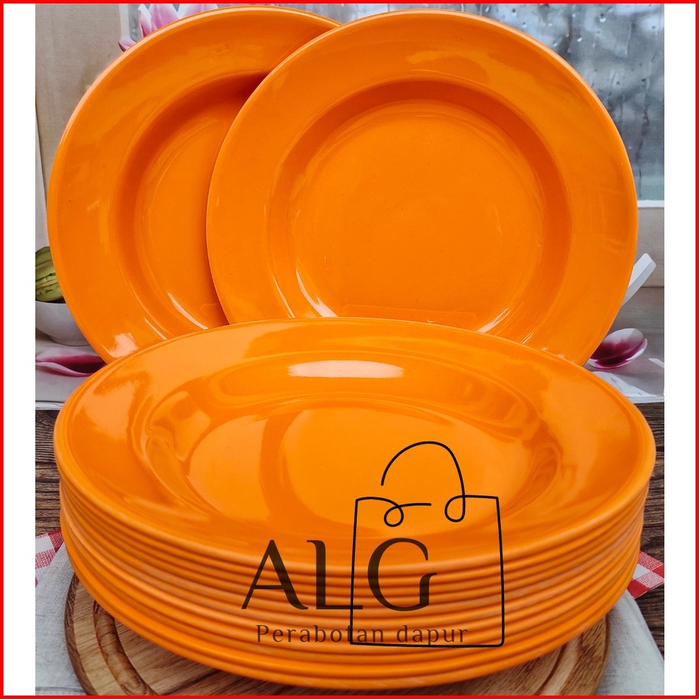 12pcs Piring Makan Besar 23cm Mika Plastic Semi Melamine